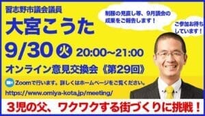 この議会の様子、そして、一般質問等で得た成果等について、毎月行っているオンライン意見交換会で報告させていただきます(参加リンクはこちら)。